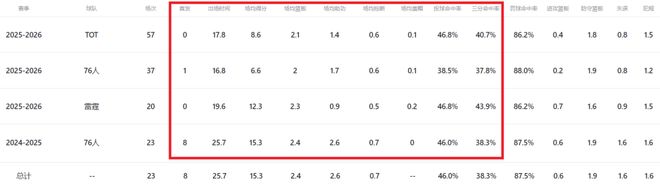 这位新援在俄克拉荷马城已出战20场全部替补,场均上阵19.6分钟贡献12.3分2.3板,场均以高达43.9%命中率扔进2.4记三分球,而他本赛季费城时期场均上阵16.8分钟得到6.6分2板1.7助,场均以37.8%命中率扔进1.2记三分球。