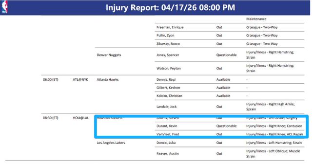 对于杜兰特,他是真的伤了,还是火箭放出的烟雾弹呢?