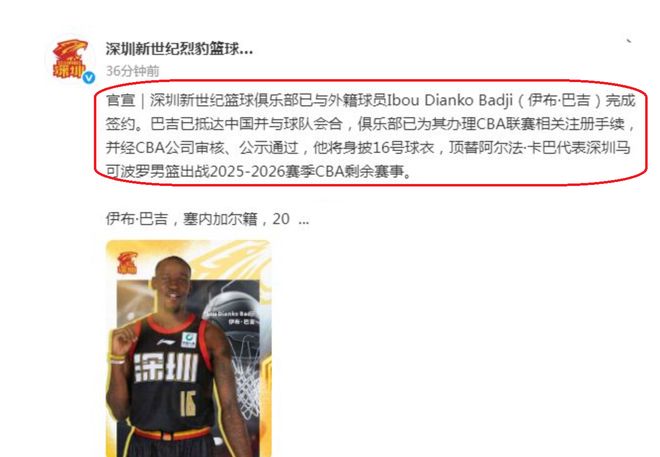 值得一提的是,本赛季最大的黑马,深圳队此番也是不甘示弱,在前几天,深圳队就签约火箭旧将克里斯托弗,弥补球队的后场。在刚刚,深圳队又做出了一个重要的决定,没错,那就是继续补充球队内线实力,签约了NBA级别的内线球员——伊布·巴吉!