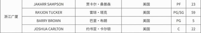 据最新注册信息显示,浙江广厦取消了新援马利克-威廉姆斯的注册,重新注册了桑普森。