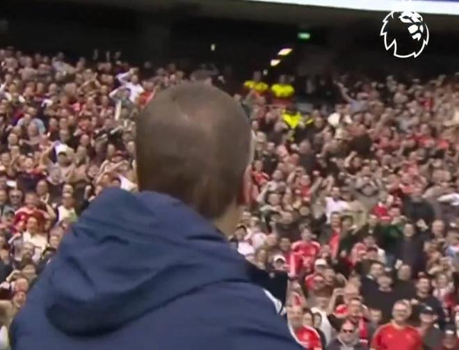 在率领诺丁汉森林做客3-0完胜热刺后,维托尔-佩雷拉赛后与森林球迷共同庆祝这场关键的胜利。