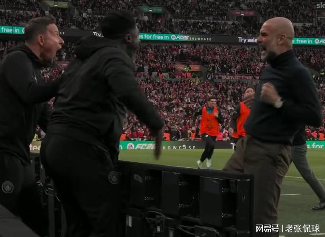 比赛的平衡就此被打破。进球后,瓜帅激情庆祝。